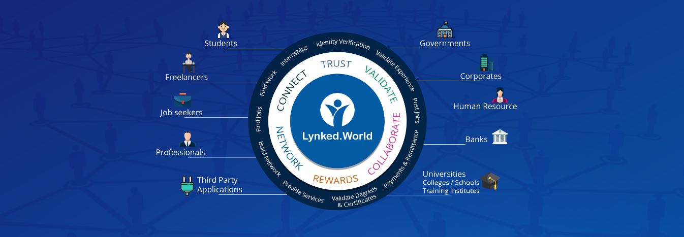 Lynked.world is a trusted and secured profession network that connects, validates, collaborate and reward professionals throughout the world, while leveraging the blockchain technology. It's an avenue for job seekers to find a job after graduation with ease. It also provides verified and secured information to governmental and public agencies.