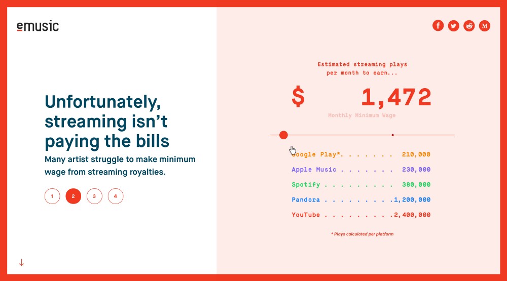The US music industry achieved double digit growth for the second year in a row, with most of the growth coming from paid streaming subscriptions, in which Spotify dominates. More people listening. Increasing revenues from plays. It all sounds great, but with the shift to streaming, artists simply aren’t making what they used to from physical sales and digital downloads from services like eMusic. How bad is it? That can be difficult to tease out, due to variation in label agreements, royalties’ management, legal fees, what type of fan is listening (free or paid) etc. So, let’s take a closer look…