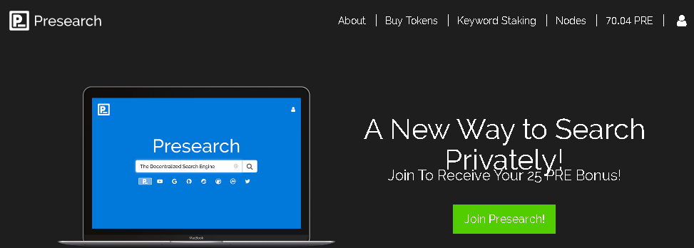 Al crear una cuenta y convertirnos en miembro de la comunidad, podremos obtener recompensas en la criptomoneda desarrollada por Presearch, el Token PRE. Para ello, solo tendremos que realizar nuestras búsquedas con el motor, obteniendo 0.25 PRE por cada búsqueda, hasta un máximo de 8 tokens PRE cada 24 horas. Pero cuidado, Presearch ha desarrollado métodos de verificación para desestimar y evitar el uso de Bots o búsquedas no genuinas (verificación de patrones de uso, no de los usuarios), por lo que es recomendable el uso sincero y comedido del motor para sacarle el mayor provecho.