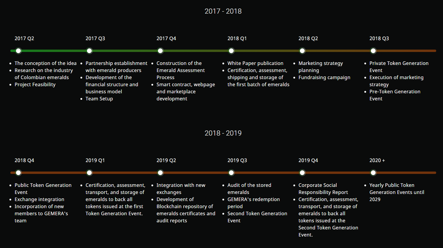 Gemera was created by a group of entrepreneurs with the knowledge and passion for Blockchain technology and the world of cryptocurrency, the challenge of which is to create crypto-tokens, besides being another partner on the exchange, can also be exchanged for the Colombian emerald company, which makes this an innovative project, which also provides greater peace of mind for investors.