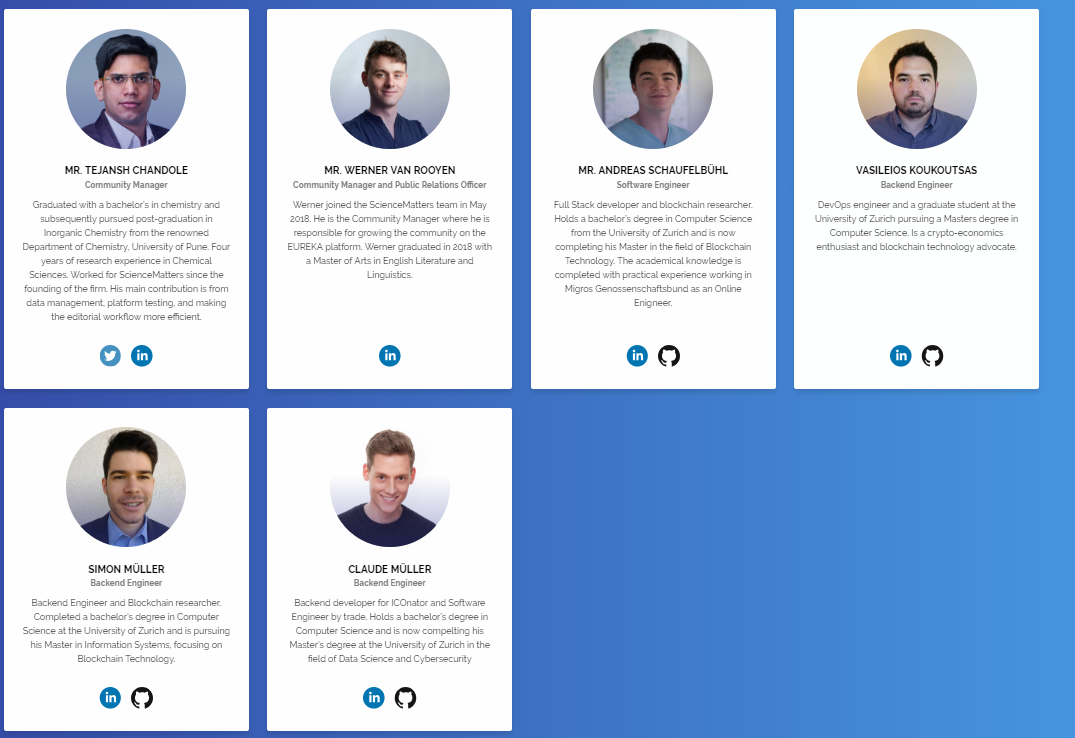 On our website, https://eurekatoken.io/#reward you can visit the “Team” section and simply by clicking on each team member's image or name you will be redirected to their professional linkedin profiles. Here you may consult and analyse each individual's expertise as much as you like. It's all been put there for us to see that they have what it takes to achieve their goals with ease and ultimately inspiring more confidence in all of us.