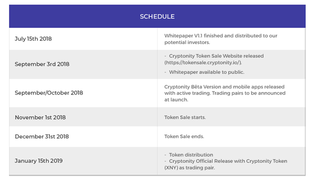 The goal of Cryptonity exchange is to be an exchange that is respected by the Cryptocurrency Community by providing the most comprehensive, secure, transparent and collaborative exchange platform in the market.