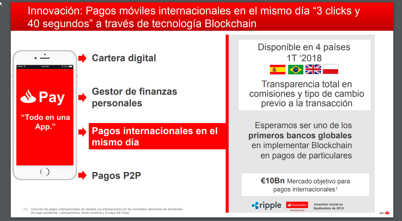 But another case is that of Banco Santander, which is working in several countries to carry out international transfers under the blockchain platform, and in this way they avoid intermediaries to carry out international transactions and these can be done from one moment to the next.