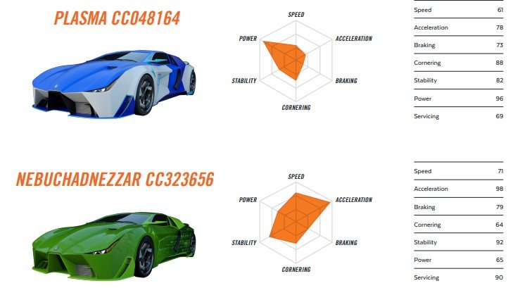 The game will initially offer 20 car variations representative of the top cryptocurrencies. Each model will have no more than 650 units, hardcoded and numerically defined from the wise contract. No further cars in those models will be produced later on. Traits of these corresponding cryptocurrency are designed to affect game dynamics. The cars will be sold via the official CryptoCarz web site and you will be bought from a wise contract using ether and a MetaMask Chrome plugin. At the 2nd stage, a passionate CryptoCarz market place will enable users to publicly trade their cars onto a secondary industry. Each version has a series of characteristics which will influence the behavior and performance of an automobile during the race. These features can be altered in time. With the addition or replacement of certain components, such as suspension and engine, making each car extremely unique. Ownership of those components will be established by nominal possession within an individual's pocket.