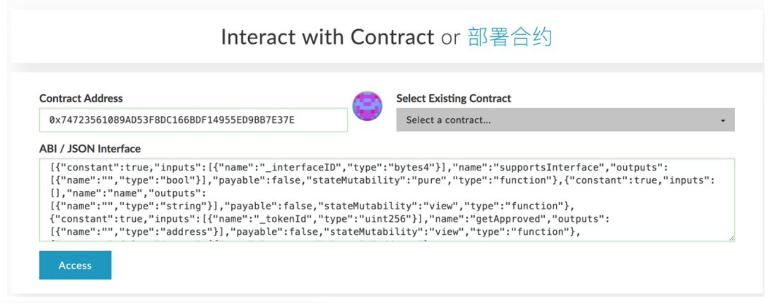 Enter contract address and contract ABI (you can find the information in Basic Information) in the corresponding blank spaces and click “Access”.
