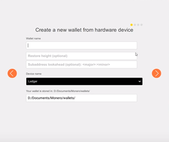 Click the “new wallet from hardware device” option. As long as the Monero application is on the Ledger hardware wallet, the Monero desktop wallet will be able to connect to the Ledger wallet. You’ll be prompted to set up a wallet name and this will have to be confirmed through the physical device.