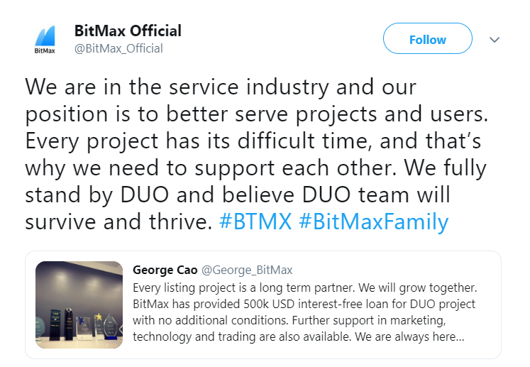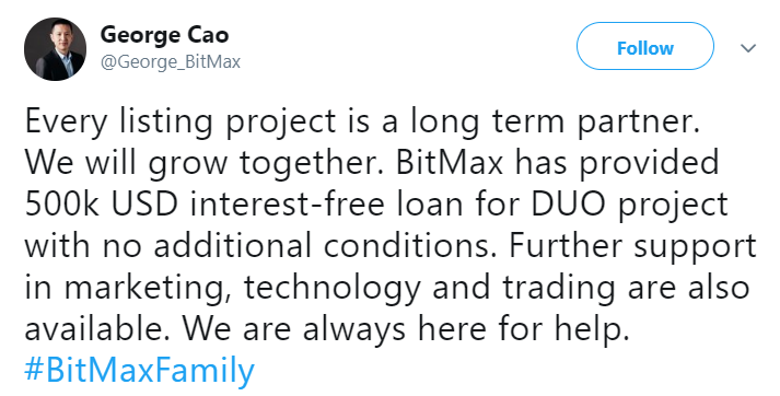 However, DUO Network’s team managed to gain incredible support from BitMax and so managed the confidence to rub aside MXC’s demands.