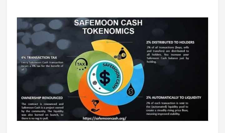 *** Brilliant and Practical Tokenomics: Safemoon Cash tokenomics is truly amazing, with a huge potential for growth. The liquidity demonstration was created with the objective of ensuring that every action made is explicitly directed to the arrangement pool, which no one, including the owners, can access. This makes Safemoon Cash more secure for monetary customers, as opposed to some DeFi platforms where devs have access to resource pools.