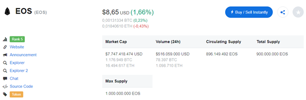 EOS is a cryptocurrency in the Top 10 electronic currency (Coinmarketcap). The EOS technology is a blockchain capable of scaling up to millions of transactions per second, eliminating user fees and allowing for fast and easy deployment of hierarchies.