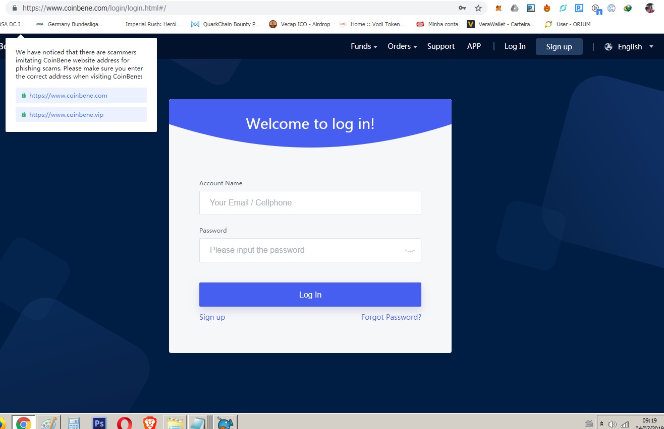 utilizarei a Exchange coinbene para ilustrar o tutorial.