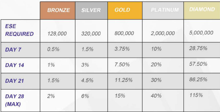 This reward system is for loyal holders of ESE tokens. If a user holds enough ESE tokens, he will become eligible to loyalty bonus.