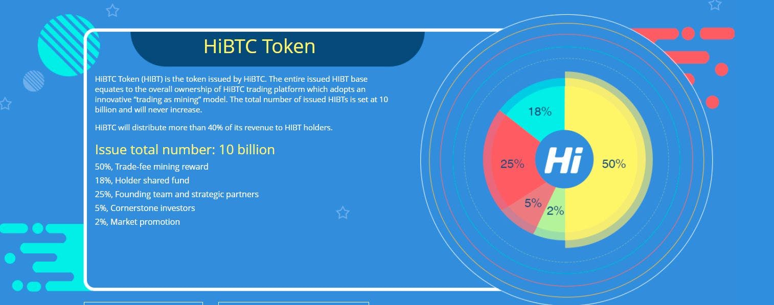 HiBTC under the “transaction as mining” model, HIBT (HiBTC token) is rewarded to users through transaction processing fee mining, and platform regularly distribute revenue to all HIBT currency holders.