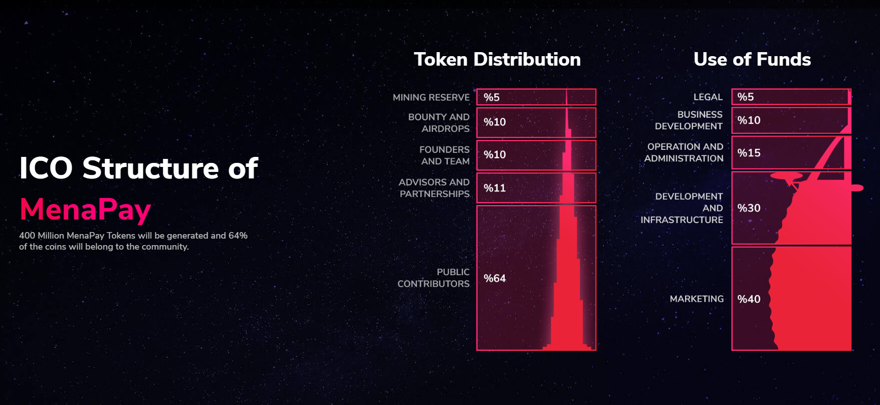 400,000,000 menapay tokens will be generated and 64% of the coins will belong to the community.