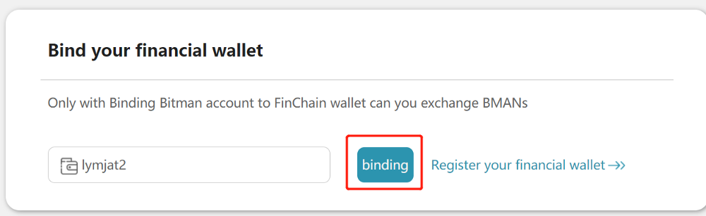 Once registered, go back to the Bitman Candy website and bind the wallet account name (wallet address).