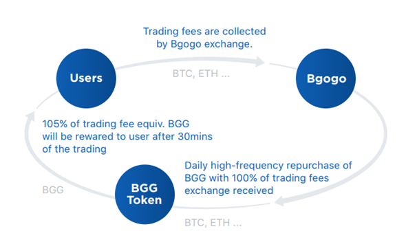 Every 24 hours, the Bgogo exchange will use the 100% trading fee collected to buy back the BGG tokens. This bought back BGG tokens will be burnt forever removing them from circulating supply.