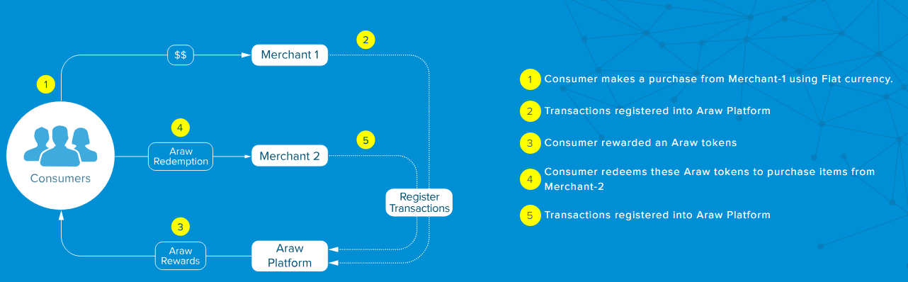 ARAW is a blockchain project that aims to develop the e-commerce market. The company decided to bet on the integration of the system of rewards and rewards. The project is based on the "Touch and Pay" system and has its own cryptocurrency. Fast transactions allow you to buy goods and services using a secure communication channel. Thanks to the company's personal widget, each user can pay for purchases on the Internet. This is faster than specifying the details of a bank card. The system is aimed at simplifying e-commerce and creating a comfortable trading environment.