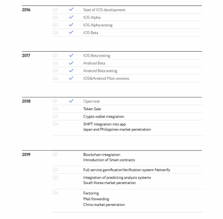 В 2018 году уже состоялись планы по открытому тестированию Token.shipit. Далее команда хочет провести частные и публичные продажи собственных монет. После внедрить криптовалютный кошелек в систему. Далее провести интеграцию SHPT монет внутрь приложения. К концу года в планах выйти на рынок Японии и Филиппин.