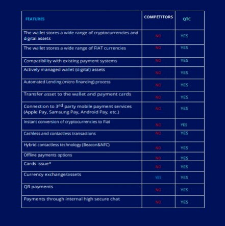 QTC is unique from its myriad of competitors, in the sense that it can be used to buy, sell, pay for goods and services, amongst others. QTC platform is focused on strengthening the financial system through introduction of cryptocurrencies. Aside this, it intends to make banking an ubiquitous phenomenona, and with minimal need for technical know-how.