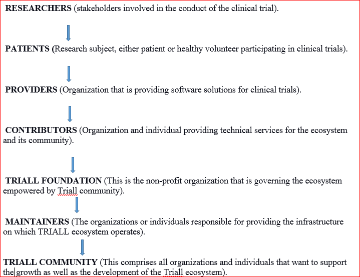 TRIALL COMMUNITY : This comprises all organizations and individuals that want to support the growth as well as the development of the Triall ecosystem.