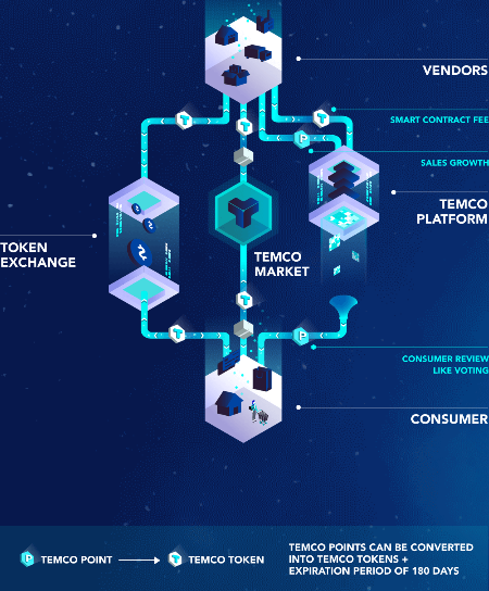 The TEMCO token model involves the TEMCO Token and TEMCO Point. TEMCO token is been created and been used for transactions(smart contract execution fee,market platform transaction commission, e.t.c) on the TEMCO platform. It can also be traded for other Cryptocurrencies on exchanges.