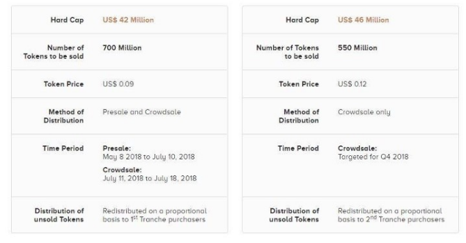 В мае 2018 года проходит старт ICO. С 8 мая по 22 июля проект проводит предварительные продажи монет. Основные продажи начинаются с 23 июля и проходят до 30 июля 2018 года. 30 июля все продажи токенов окончательно заканчиваются.