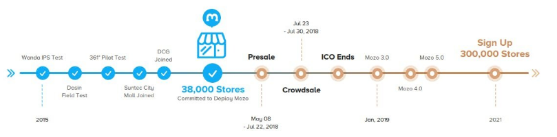 Дорожная карта платформы Mozocoin начинается с 2015 года. Тогда был пройдет IPS Test. Это позволило улучшить продукт и выработать стратегию по его дальнейшему развитию. В первом квартале 2016 года начинается новый этап тестирования продукта. Происходит интеграция как онлайн, так и офлайн продаж. Это позволяет выйти проекту на новый уровень, сформировав отличную возможность для его дальнейшего развития. Теперь разработчикам становится доступен целый пласт для будущей работы. До конца 2016 года команда проводит всё больше тестов. Отмечает ошибки и начинает над ними активно работать, что позволяет создать хороший продукт на выходе.