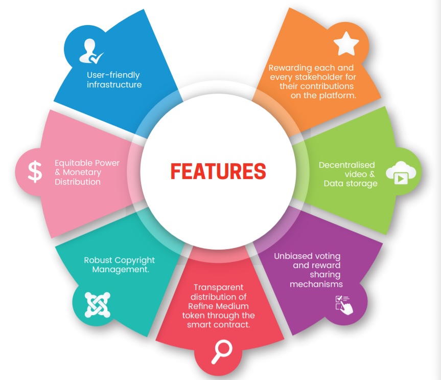 Refine Medium, blok zincir temeline dayalı müşterilere sahip oldukları en iyi, en özgün, en kaliteli video içeriğini sunmayı amaçlayan, merkezi olmayan bir video akış platformudur. Platformun izleyicileri, yaratıcıları ve yenilikçilerinin blockchain bazlı akıllı sözleşmeler yoluyla bağlanmalarını sağlamak için tasarlanmış Ethereum tabanı üzerine kurulmuştur. Refine Medium, tam şeffaflık sağlamakla beraber, kullanıcıların videolarını incelemelerine, coğrafi engeller olmadan, kolayca keşfedilebilen ve korsanlıktan kaynaklanan indirmeleri önleyerek ödüllendiren bir tür platformdur. Aynı zamanda kullanıcıları için düşük abonelik ücretleri de platformun en büyük özellikleri arasında yer almaktadır. Platformun amacı; sorunsuz, kullanıcı dostu bir akış deneyimi sağlamak için kolay, hızlı, güvenli video yüklemeleri sağlayacak benzersiz bir altyapı sağlamaktır.
