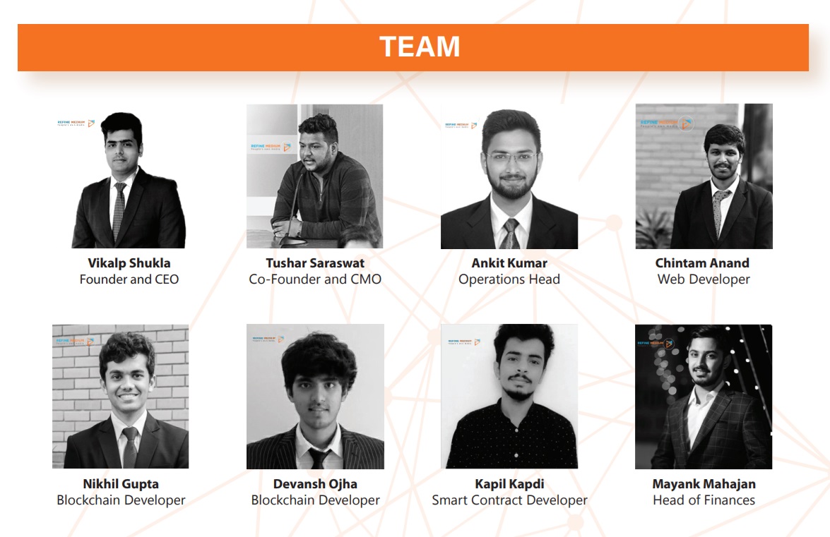Refine Medium ekibi alanında uzman blockchain geliştiricisi, finans uzmanı web tasarımcılarının hazırlamış olduğu projedir. Takım üyeleri aşağıda yer almaktadır.