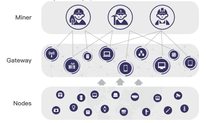 CoDAG (сжатый прямой ациклический граф). Предназначен для быстрой записи транзакций в IoT-устройства. Что касается решения существующих протоколов blockchain, то Blockcloud предоставляет совершенно новую структуру. Помимо майнеров и IoT-устройств будет введена дополнительная роль, которая является шлюзом. Ее будет выполнять устройство с достаточными ресурсами для запуска протокола, например, мобильный телефон или смарт-автомобиль. В этой структуре система транзакций окутана сплетениями из блоков, которые хорошо вписываются в асинхронные операции.