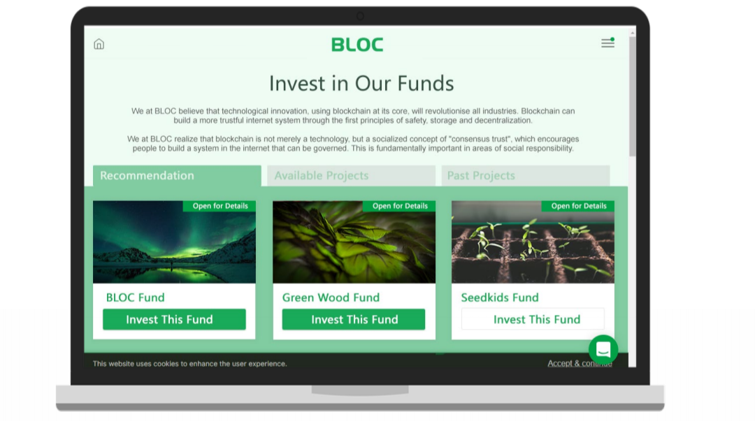 Bloc is aiming to build an investment platform which allow investors to invest their funds in high impact projects. With this investors will help to solve global issues by providing necessary funding to idealistic projects. Until today investors didn't have a perfect platform to find impact projects to easily make investments. Bloc platform provides all the impact project details with which investors can make fund investment.