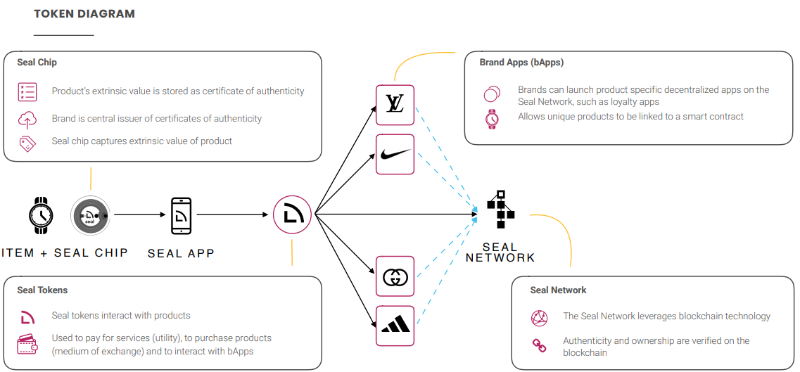 Platform Seal makes it easy for manufacturers to manage products that manufacturers create according to market needs. The product will be placed centrally through the Blockchain system that will be displayed on the Seal Network. Token Seal can used to interact with this decentralized brand app (bApps). Seal Network aims to be where all brands come together on one platform that will allow consumers to see the authenticity of the product and as a communication medium between Seal Network and bApps in the future.