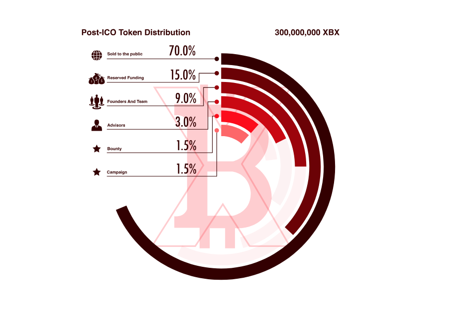 In total, the developers will release 300 million tokens, the initial cost of which will be$ 0.5 per 1 xbx at the time of the preliminary sale. You can buy these coins for the most popular cryptocurrencies, as well as Fiat. If a purchase of more than 5 thousand tokens is made, then a pleasant discount is waiting for the user. More detailed information with regards to the conduct of the ICO, visit the website of the project.
