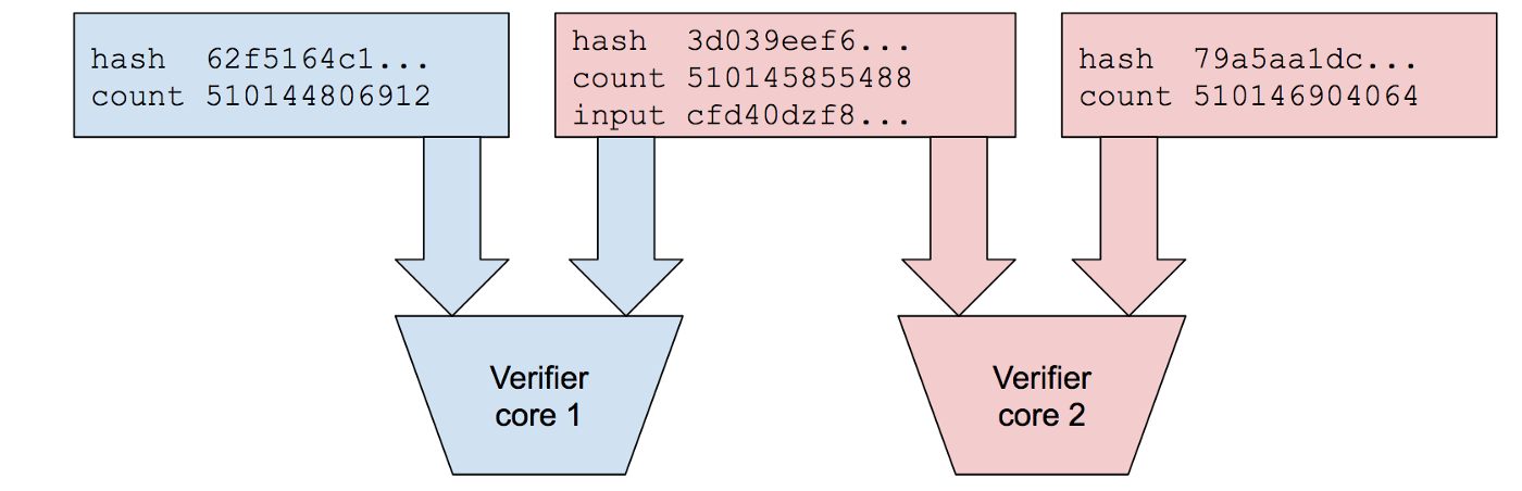 While the recorded sequence can only be generated on a single CPU core, the output can be verified in parallel.