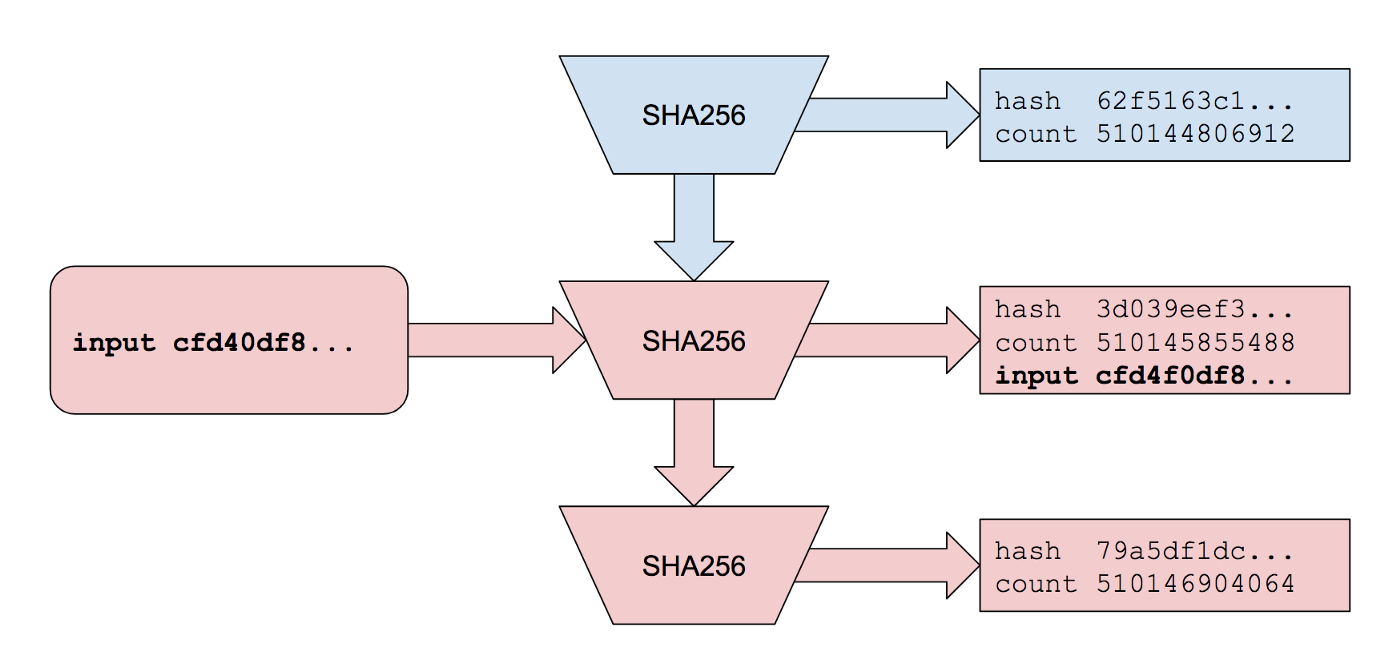 We are using SHA256, and thanks to Bitcoin there has been significant research in making this cryptographic hash function fast. This function is impossible to speed up by using a larger die area, like a Look-Up Table, or unrolling it without impact to clock speed. Both Intel and AMD are releasing consumer chips that can do a full round of SHA256 in 1.75 cycles.
