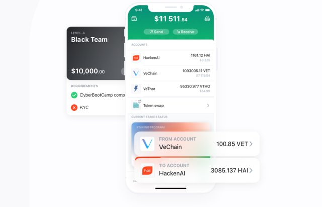 HackenAI does not bring itself into the picture of creating another wallet because there a lot has been done in that area, however, the Vechain wallet module has been integrated into the app created. This will enable users to be able to buy and store their HAI tokens in their wallets conveniently. The main objective of the team is to create a well-secured environment for users and not just of the wallet they use. By so doing, the user experience and interface will be unique. So to further enhance this, the team has introduced the cybersecurity educational module, which will bring about the efficient and effective usage of tools provided.