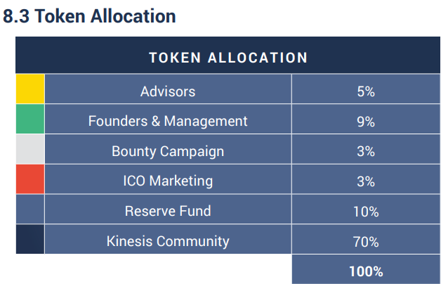 The Kinesis designated token is known as KVT which stands for Kinesis Velocity Tokens, and it is an ERC 20 compatible utility coin. The main objective of this coin is in order to secure the needed capital to support the global Kinesis Monetary System. As mentioned earlier, certain percentages of the amount earned in transaction fees from the various facet of the network will be given to holders of the KVT tokens.