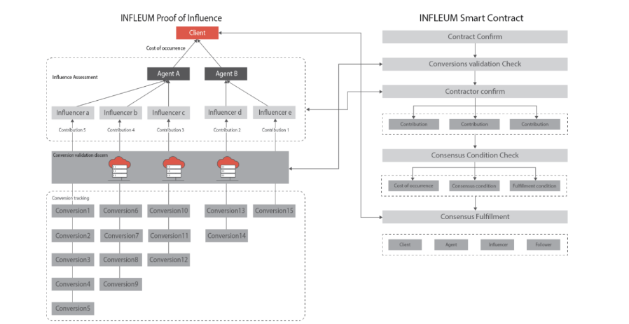 The effectiveness of influencers is measured by CVD(Conversion Validation Discern)system. It measures the contracts completed effectively by each user according to their quality of implementation in reaching audience of buyer.