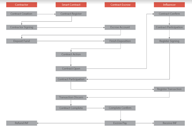 - Contract creator has to escrow certain amount related to value of campaign and then he is allowed to create campaign,so that it provides a guarantee of payment for all influencers.