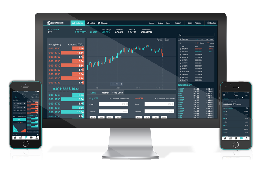 Extradecoin is a trading platform that supports a variety of cryptocurrencies but does not support any fiat currency (e.g. USD, GBP, JPY or CNY…). At first, Extradecoin will supports the transactions in popular coins, i.e., BTC, ETH, USDT, XRP, LTC, NEO, ADA and especially ETE.