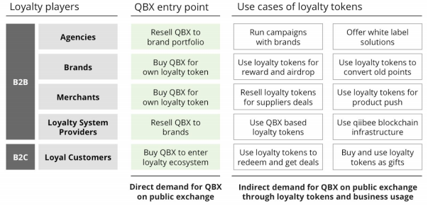 By structuring the use cases and lifecycle of QBX, demand from agencies, loyalty system providers, brands, merchants and loyal customers to use loyalty tokens is directly translated into demand for QBX on public exchanges.