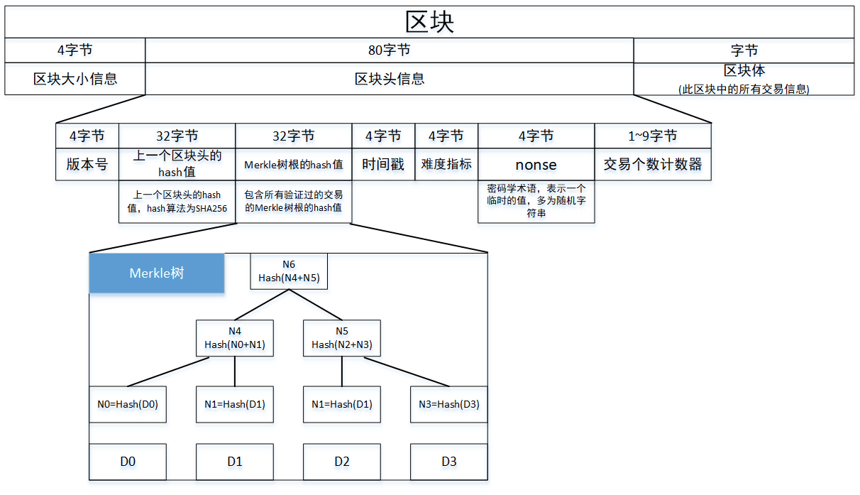 请看节点2所做的事情。节点将10分钟之内获取到的交易信息(长度需要控制,每个区块不大于1MB),打包生成Merkle树根的hash值,节点暴力尝试计算出Nonce串,然后加上其他信息,生成候选区块。然后判断候选区块头的hash值是否满足一定条件(小于某个值),如果满足,就进行全网广播,候选区块变成了提案区块。