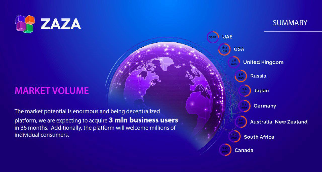 💡ZAZA a decentralized BUSINESS PLATFORM is expecting to acquire 3 mln business users within 36 months. Additionally, the platform will also welcome millions of individual consumers worldwide!