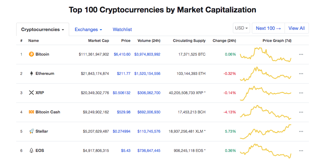 The overall cryptocurrency market has continued to trade with a range that was most recently established when the overall market cap reached the $212 billion level on October 14th. Since then the market has seen ups and downs, yet the market cap currently sits at roughly $212 billion. Bitcoin is currently trading at $6,425, an increase of 0.25% from yesterday, while Ethereum is down 0.28% and trading at $211.93. Out of the top 100 coins, WAX has performed the best over the last 24-hours, currently up 10.68% and trading at $0.12454.