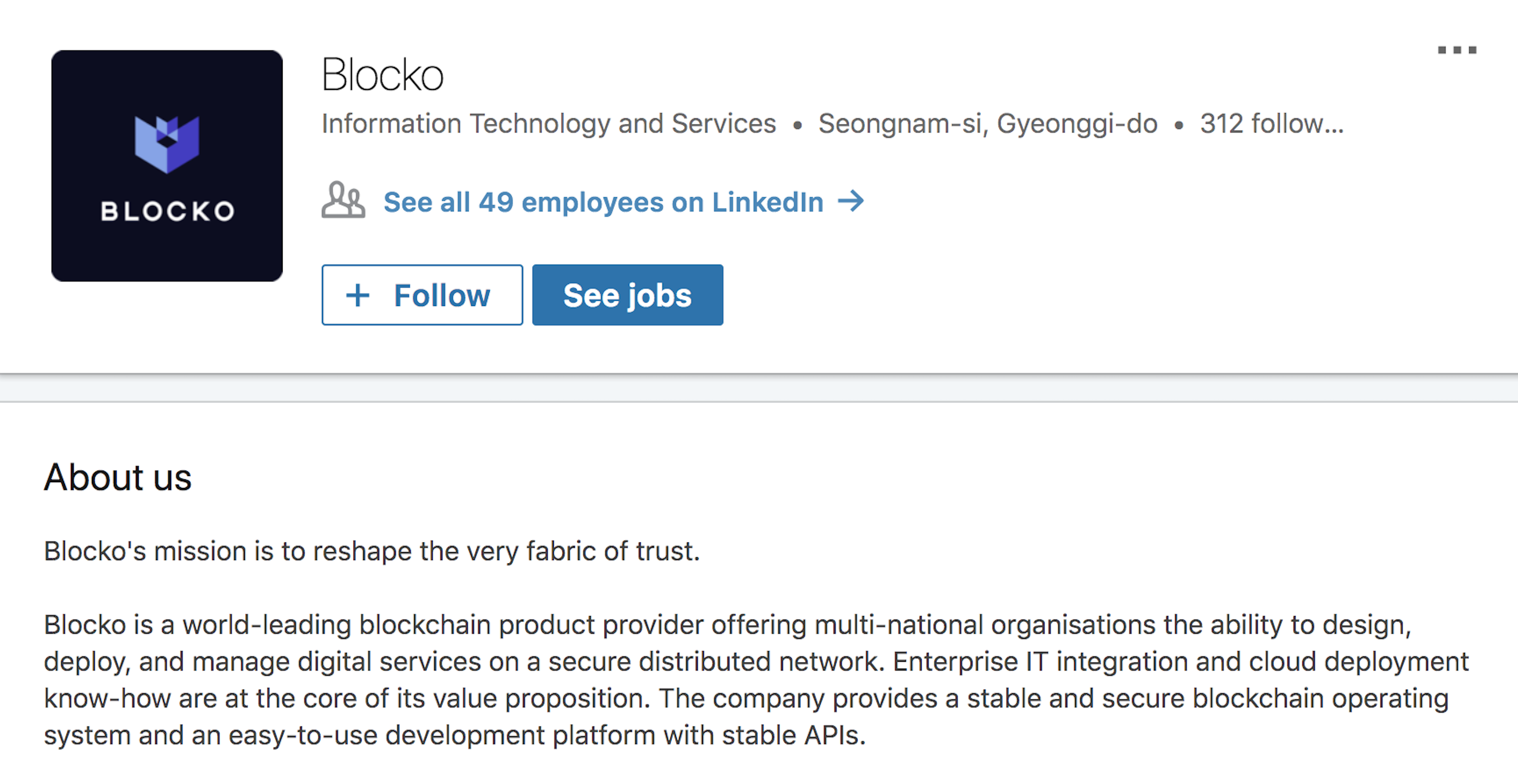 На сайте компании список разработчиков отсутствует, но в LinkedIn можно найти 49 сотрудников. Интересным является тот факт, что сотрудники в Blocko и Aergo тесно переплетены между собой.