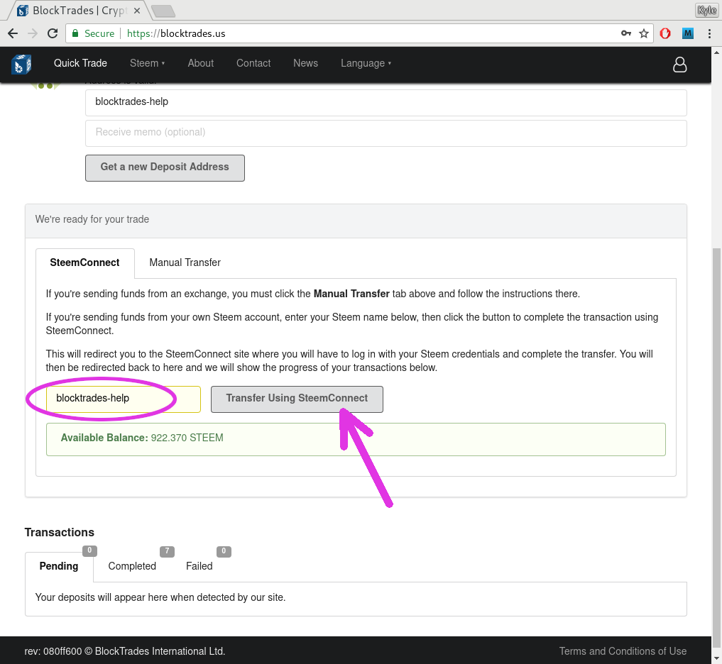 If you're looking to trade Steem or SBD the process is almost identical, but we have included support for SteemConnect to make the transfer even easier.