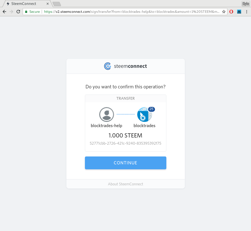 This will guide you to a secure page where you will be asked to confirm your transaction to blocktrades and then enter your Steem account password.