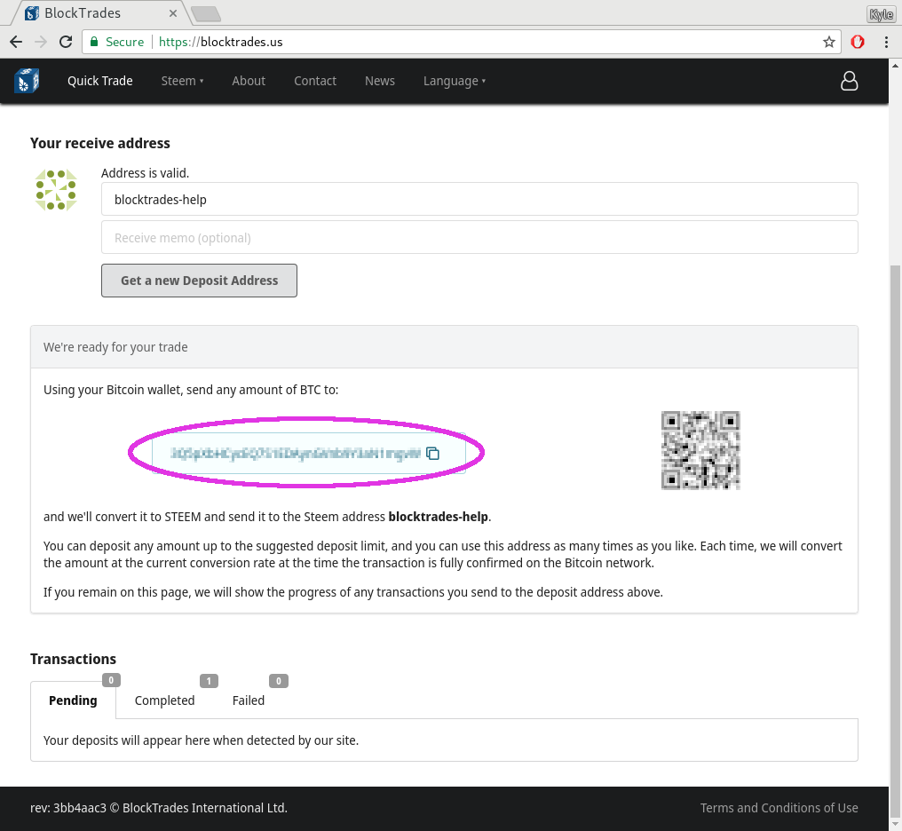 The page will then generate either a unique address to send your cryptocurrency to (BTC, BCH, Dash, Doge, ETH, LTC, XMR) or give you a common address with a unique memo (BTS, Steem) along with instructions to follow to initiate your exchange.