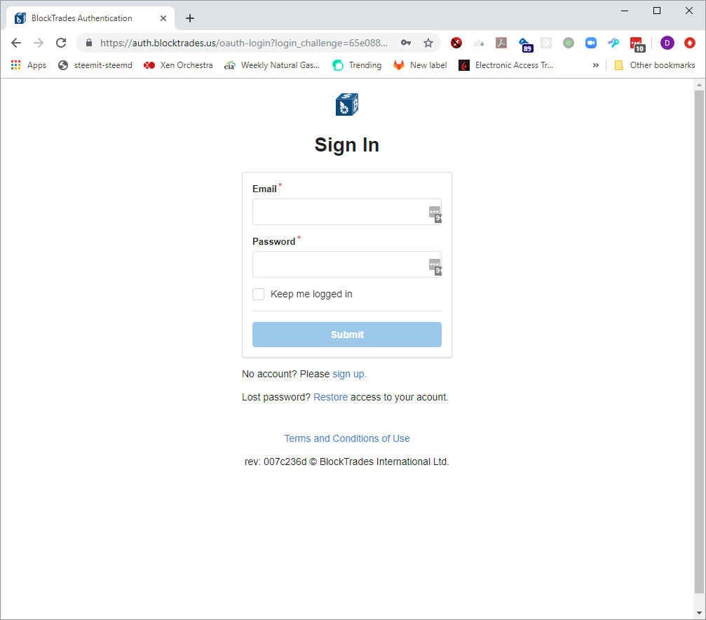From here, you can click on one of the buttons to create an account or login to your existing BlockTrades account. After clicking on the login button, you will see our standard login page: