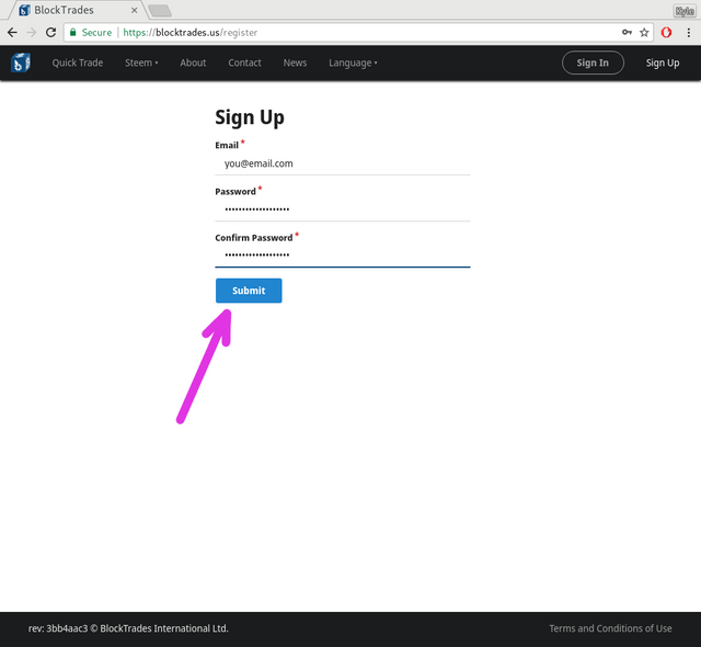 आपको क्षणों में एक पुष्टिकरण ईमेल प्राप्त करना चाहिए। यदि किसी कारण से आप नहीं करते हैं, तो आप अपने स्पैम फ़ोल्डर की जाँच कर सकते हैं या अपने अनुमत संपर्कों में "blocktrades.us" जोड़ सकते हैं। यदि आप अभी भी इसे नहीं ढूंढ पा रहे हैं तो कृपया support@blocktrades.us को उस पते से ईमेल करें जिसे आपने पंजीकृत करने की कोशिश की थी, और हम आपके लिए अपने खाते को मैन्युअल रूप से सक्रिय करेंगे।