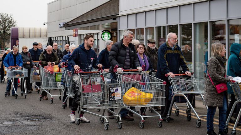 Whilst there is police tape to stop people from entering the beach and fines issued to people walking on the street, people que up in numbers outside mercadona supermarket to piledge the whole shop. How does queing up in large numbers and rushing around a supermarket with everyone else stop the spread of a deadly virus?